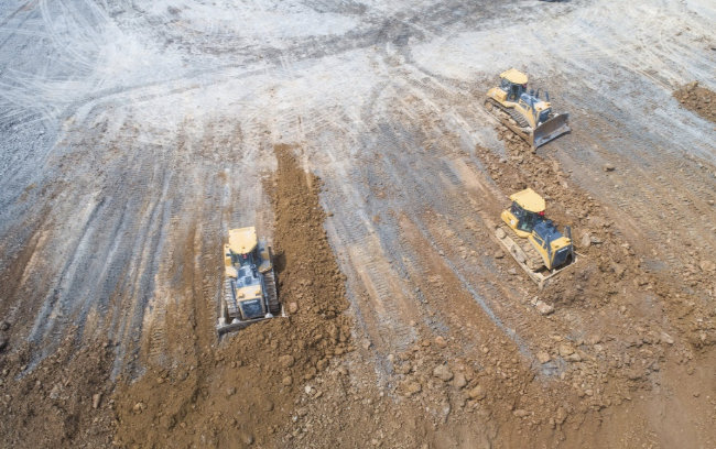 国内西南某金属矿排土场施工机群作业,山推推土机以动力足,质量好,效率高,故障率低赢得该矿山青睐