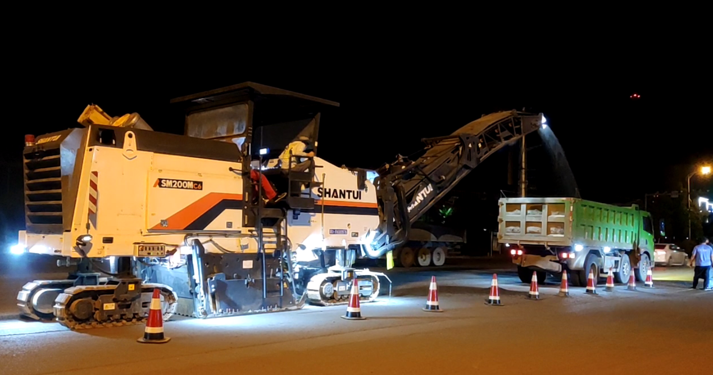 SMT50-C6N铣刨机在河北夜间铣刨施工
